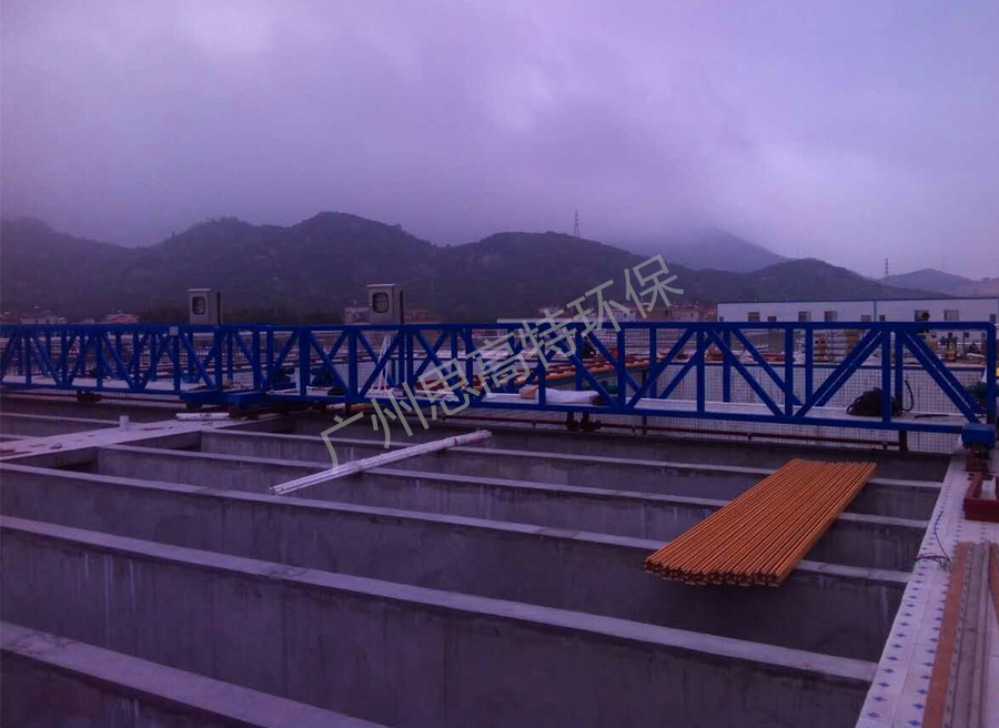 刮渣机行车采用桁架结构,设计考虑了刮泥机运行的稳定性,且便于检修和管理。